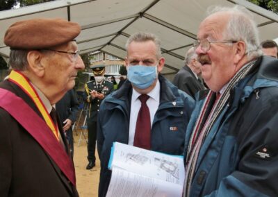Onderluitenant Jean de HALLEUX, een reserveofficier in het ‘SAS Parachute Regiment’, was een van de eerste soldaten die zich vrijwillig aanbood. Hij werd gedood tijdens een aanval in oktober 1951 toen hij probeerde een verkenningsteam van de (US) artillerie te hulp te komen. Ik ben verheugd over de aanwezigheid in ons bijzijn van zijn nicht, Mevrouw POISSONIEZ, trouwens een inwoonster van onze gemeente.